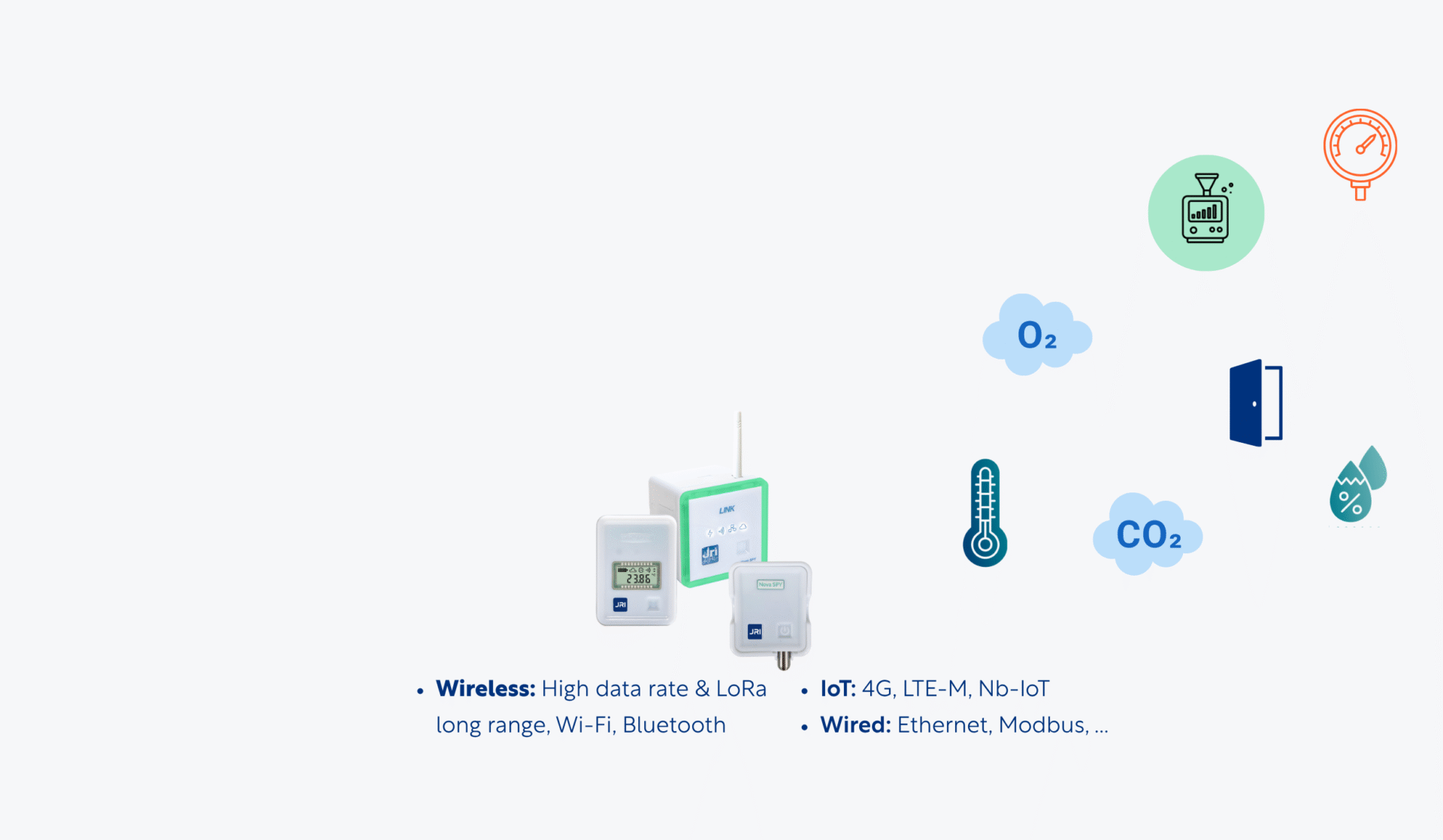 LoRa SPY range: LoRa Wan long-range wireless data loggers with displays for monitoring all environmental parameters.